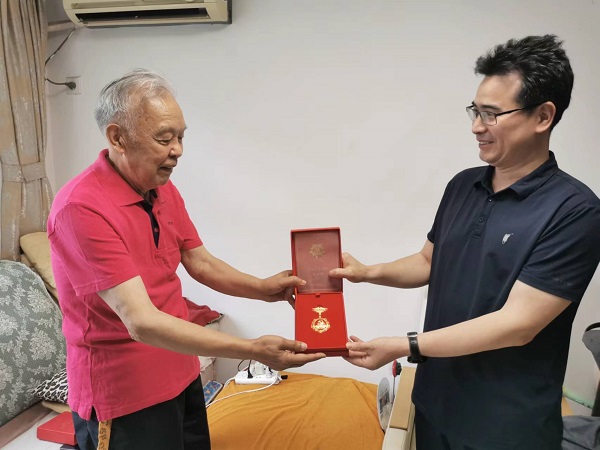 为弘扬党的优良传统,增强老党员的荣誉感、归属感, 7月3日,党委副书记王守红上门为党龄达到50年的老党员颁发“光荣在党50年”纪念章,向其致以崇高的敬意和亲切的问候。