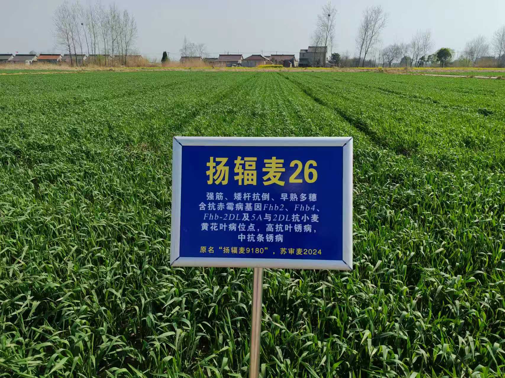 原名“扬辐麦9180”,苏审麦20261004,系辐射诱变、杂交及分子标记辅助选择而成的强筋小麦品种。比扬麦20早2.4天,株高79.7厘米,有效穗34.3万,每穗42.9粒,千粒重42.5克,省区试较对照增产5.1%,高抗叶锈病、中抗赤霉病(含Fhb2、Fhb4基因)、小麦黄花叶病(含2DL及5A抗性位点)及条锈病,高抗穗发芽,耐肥抗倒性强。