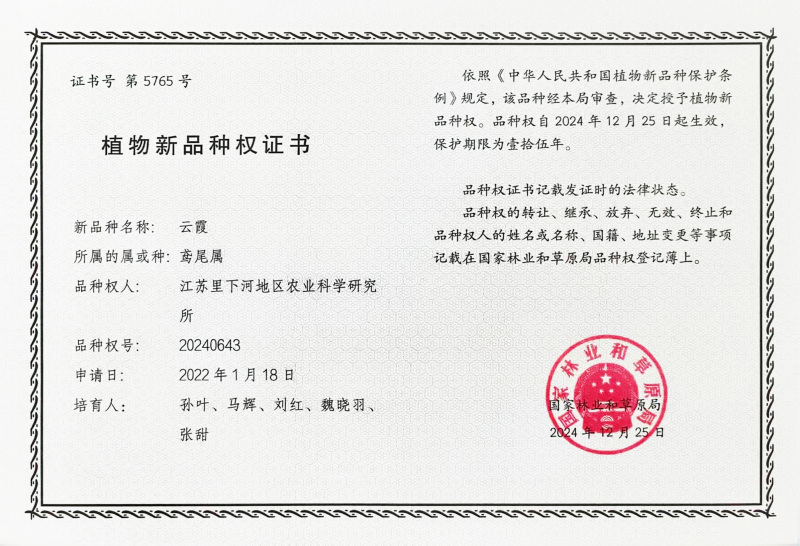 株高60厘米,葶高48.1-66.2厘米,叶宽2.1厘米,花横径13.7-16.5厘米,单花茎着花2朵,花瓣粉紫色,3花柱,花柱粉紫色,花斑黄色,花型平开,单朵花期约2-3天,群体花期5月中旬-6月上旬,不结实。该品种株型紧凑、茎秆挺拔、花色素雅、分蘖能力强,开花习性稳定、花量大,适应能力强、综合抗性好。