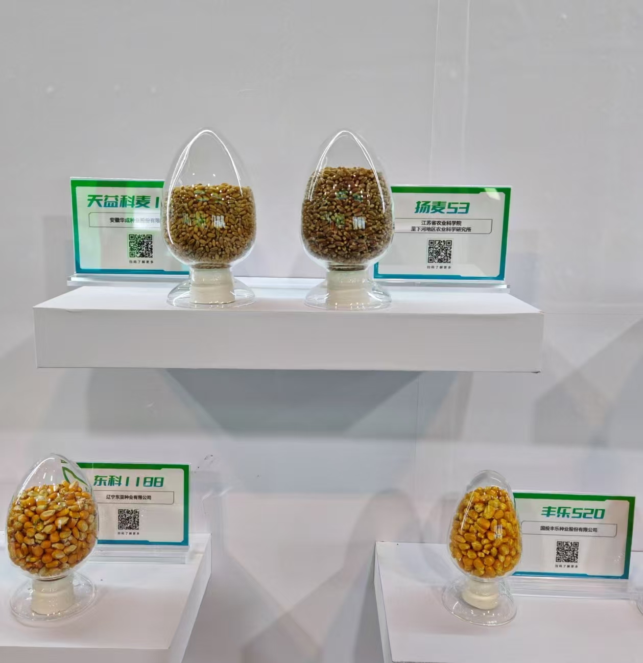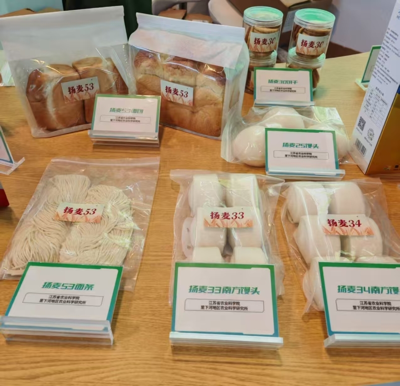 在交易会核心区域“农业前沿科技成果”专题展览中,我所育成的抗赤霉病高产优质小麦新品种“扬麦53”备受关注。该品种凭借突出的抗病性、高产特性与优良品质,入选农业农村部生物育种重大计划的标志性成果。农业农村部及相关司局级领导亲临展位,详细听取了扬麦53选育过程、特性优势及推广应用情况,并给予了充分肯定;国内外客商、种业企业代表和农业合作社负责人等现场表达了浓厚的合作兴趣。展会期间,我所还集中展示了扬麦25、扬麦30、扬麦33和扬麦34等一系列优良品种和面制食品。