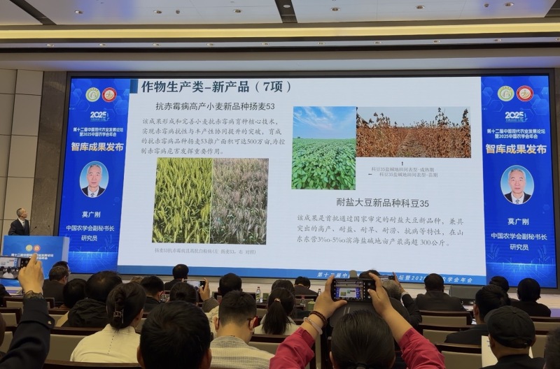 本次大会以“新质生产力赋能农业强国建设”为主题,通过主旨报告、成果发布、院士论坛、新场景路演、前沿访谈等形式,全面探讨农业科技前沿趋势与产业创新路径。会上正式发布了《2025中国农业重大新技术新产品新场景》(简称“三新”成果),我所“抗赤霉病高产小麦新品种扬麦53”成功入选作物生产类新产品成果(共7项),并作为重要成果在核心板块“板块一——稳产保供 种质创新与技术革新‘双轮驱动’”中集中展示。